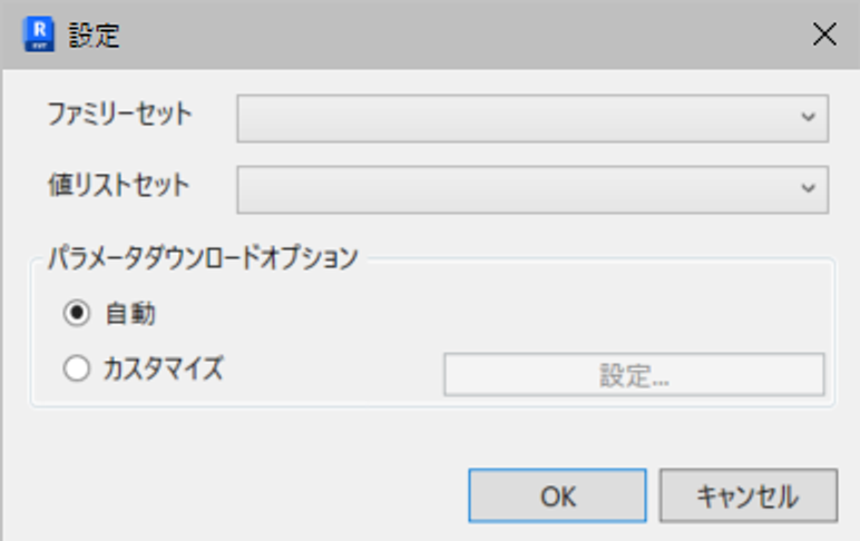- ファミリーセット クラウドで登録済みのファミリのセットを指定することが可能です。 アップロードおよびダウンロード時のデフォルト値となります。